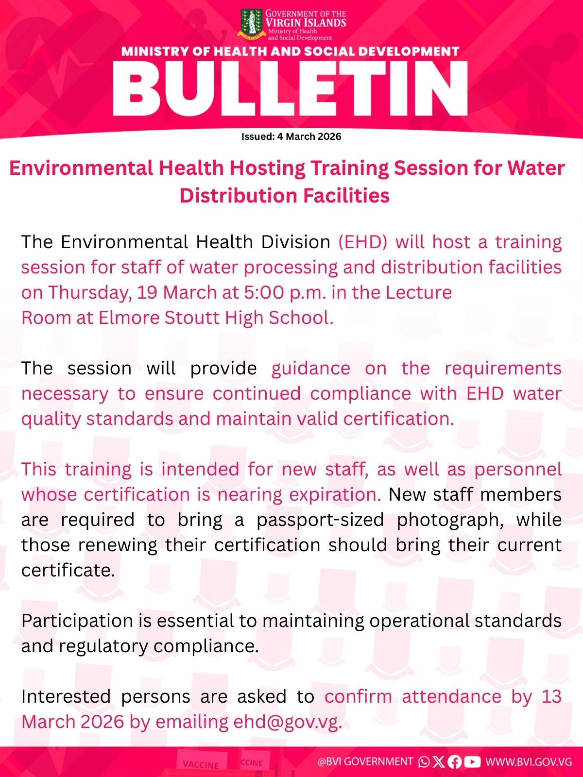 Interested persons are asked to confirm attendance by 13 March 2026 by emailing ehd@gov.vg.