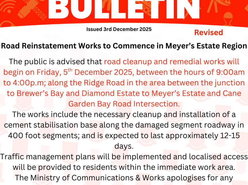The public is advised that a portion of Millionaire Road in the vicinity of Anything Goes Bar and Restaurant will be temporarily and partially closed