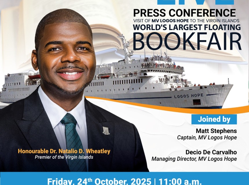 Premier, Honourable Dr. Natalio D. Wheatley will host a press conference on Friday, 24 October 2025, on board the world's largest bookfair, MV Logos Hope.