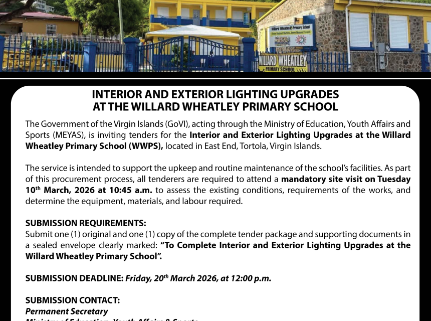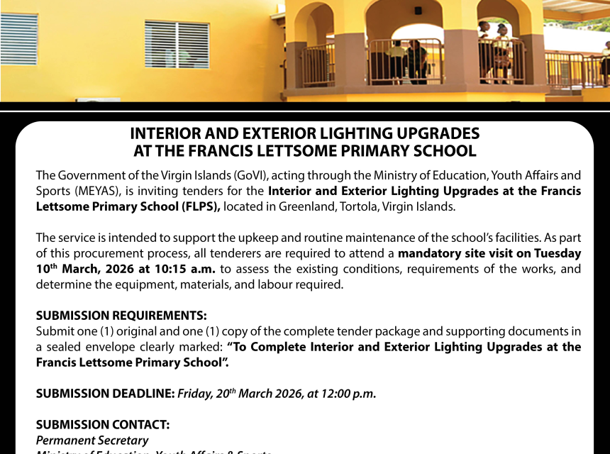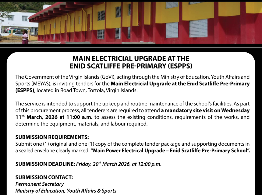 The Government of the Virgin Islands, through the Ministry of Education, Youth Affairs and Sports, is inviting tenders for the Supply and Delivery of a