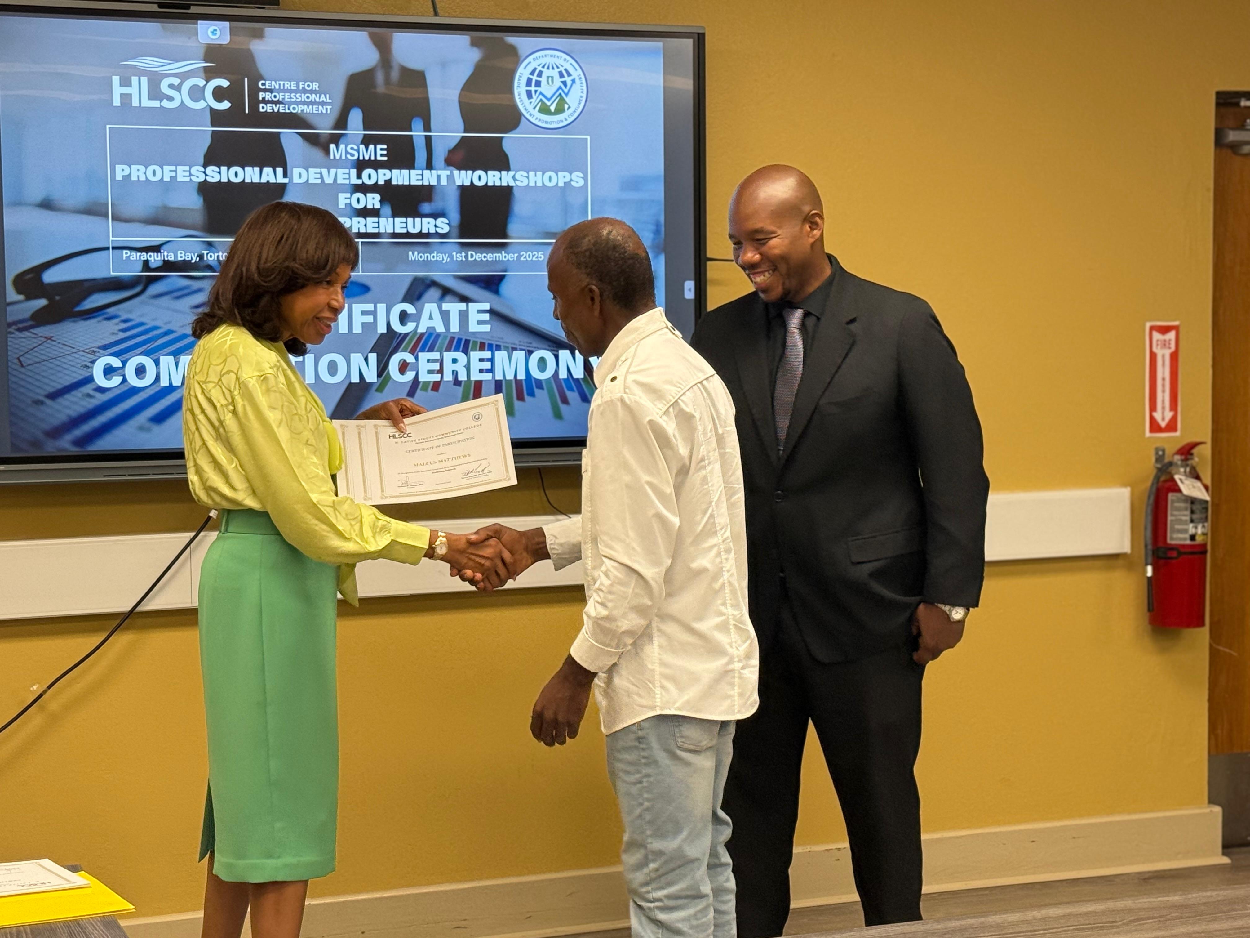 The Department of Trade and Investment Promotion, in partnership with the H. Lavity Stoutt Community College (HLSCC), celebrated the successful completion of its three-week Entrepreneur Training Programme during an award ceremony held on Monday, 1 December 2025, at the HLSCC Marine Centre.