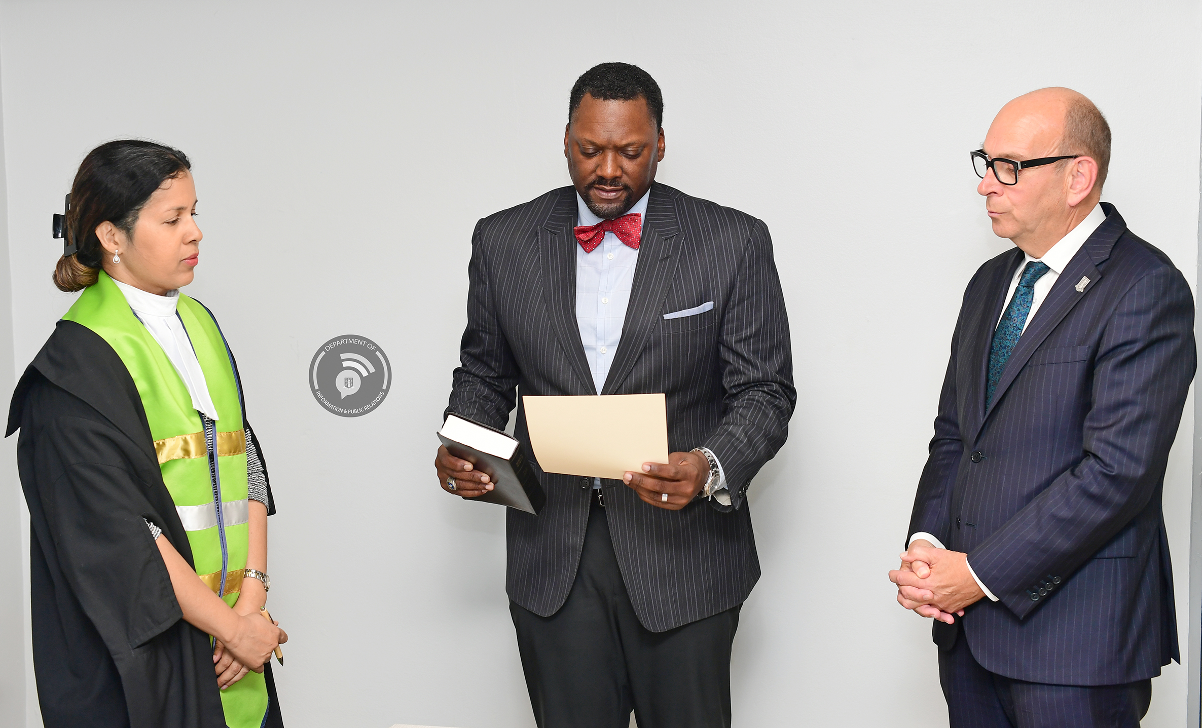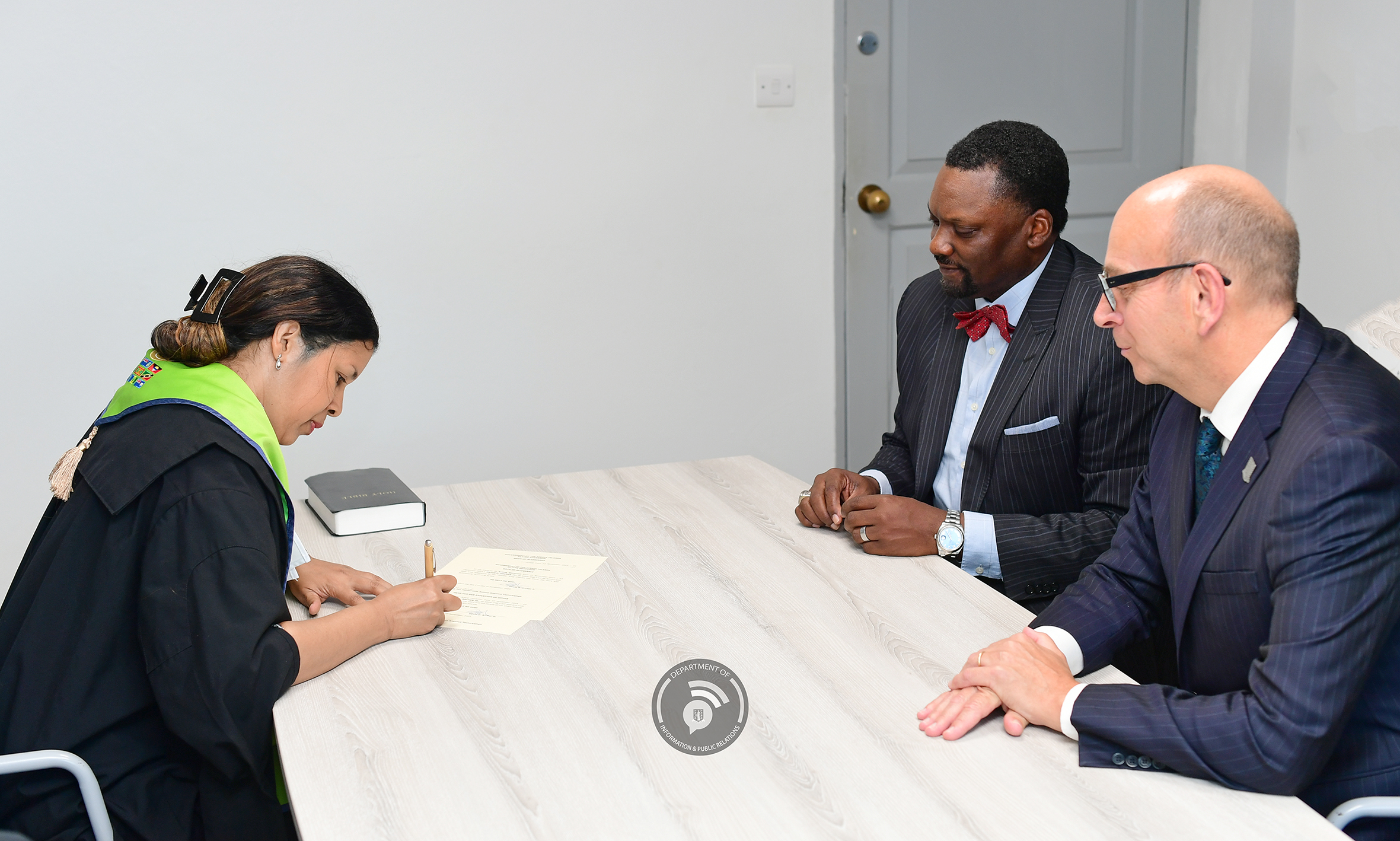 Mr. Archer’s Oath of Allegiance and Oath for Due Execution of Office was administered by Her Ladyship, the Honourable Justice Angelica Teelucksingh in the presence of His Excellency the Governor, Mr. Daniel Pruce.