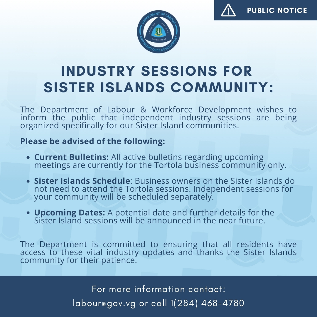 The Department of Labour & Workforce Development wishes to inform the public that independent industry sessions are being organized specifically for our Sister Island communities.