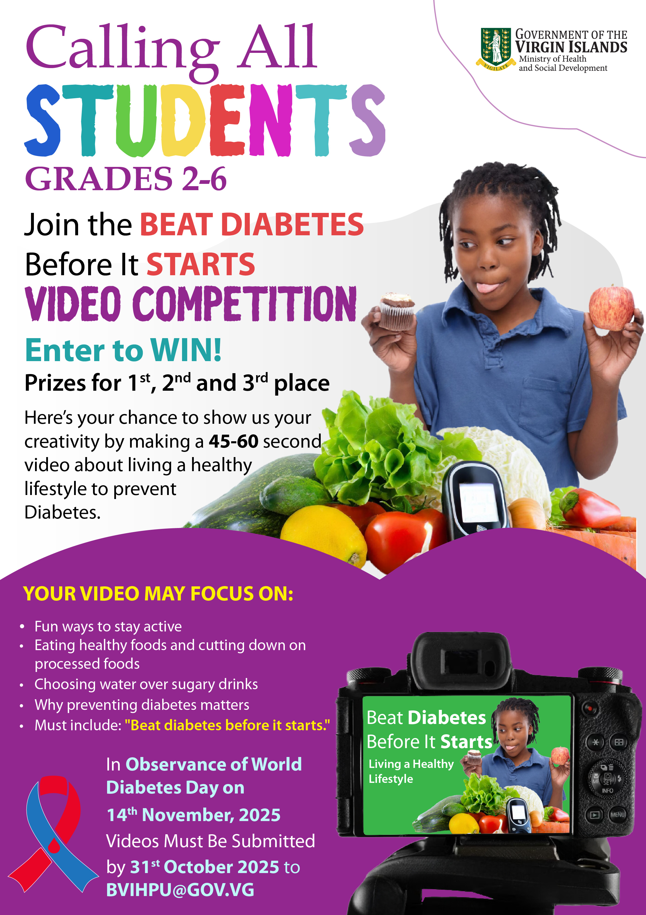 The deadline for video submissions is November 5, and winners will be announced on World Diabetes Day, November 14. Exciting prizes sponsored by Unite BVI await the top three entries, with first, second, and third place awards recognizing the most creative and impactful videos.
