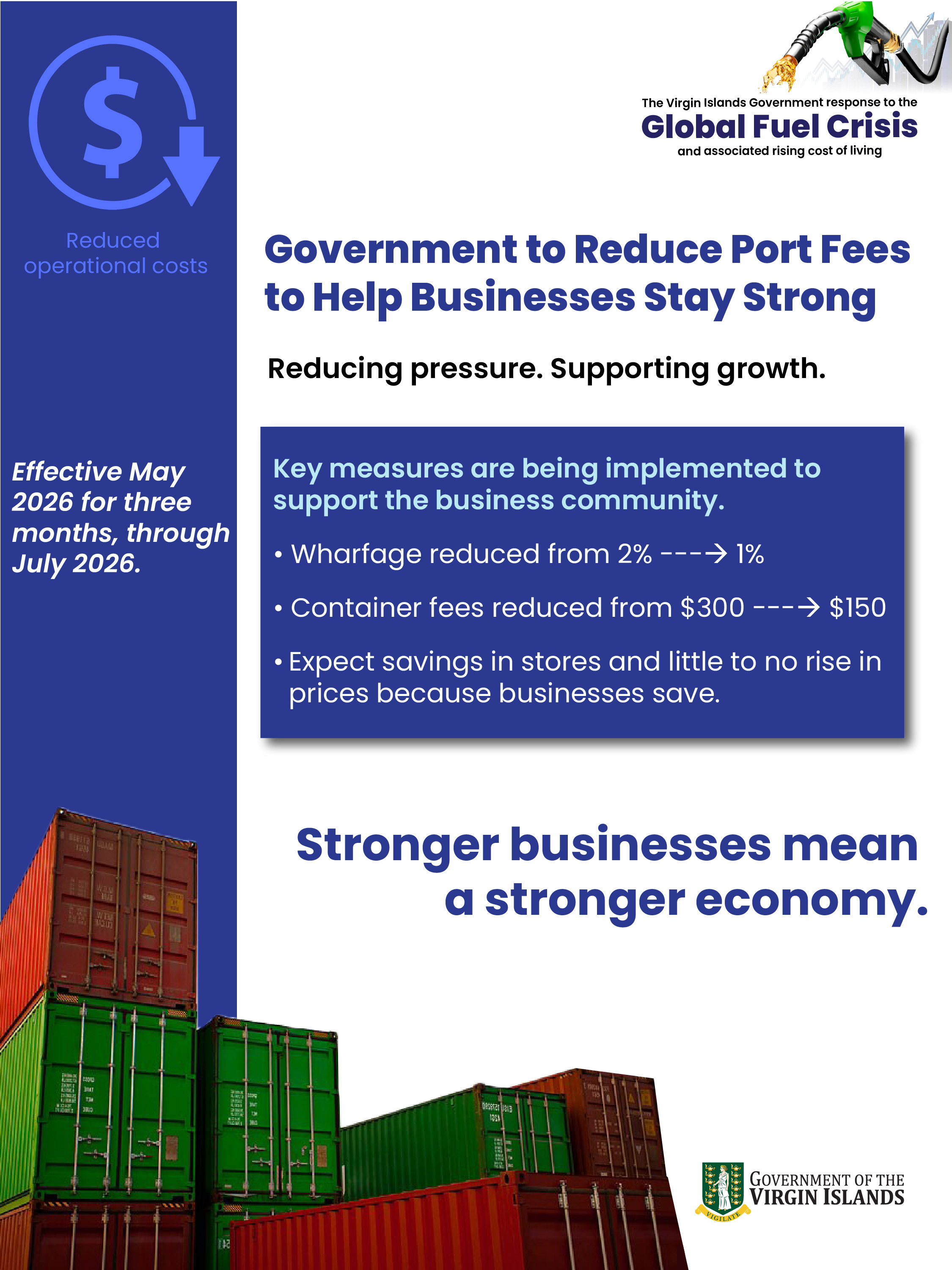 The Government of The Virgin Islands has announced targeted reductions in port-related fees to support the business community and ease the cost of goods.