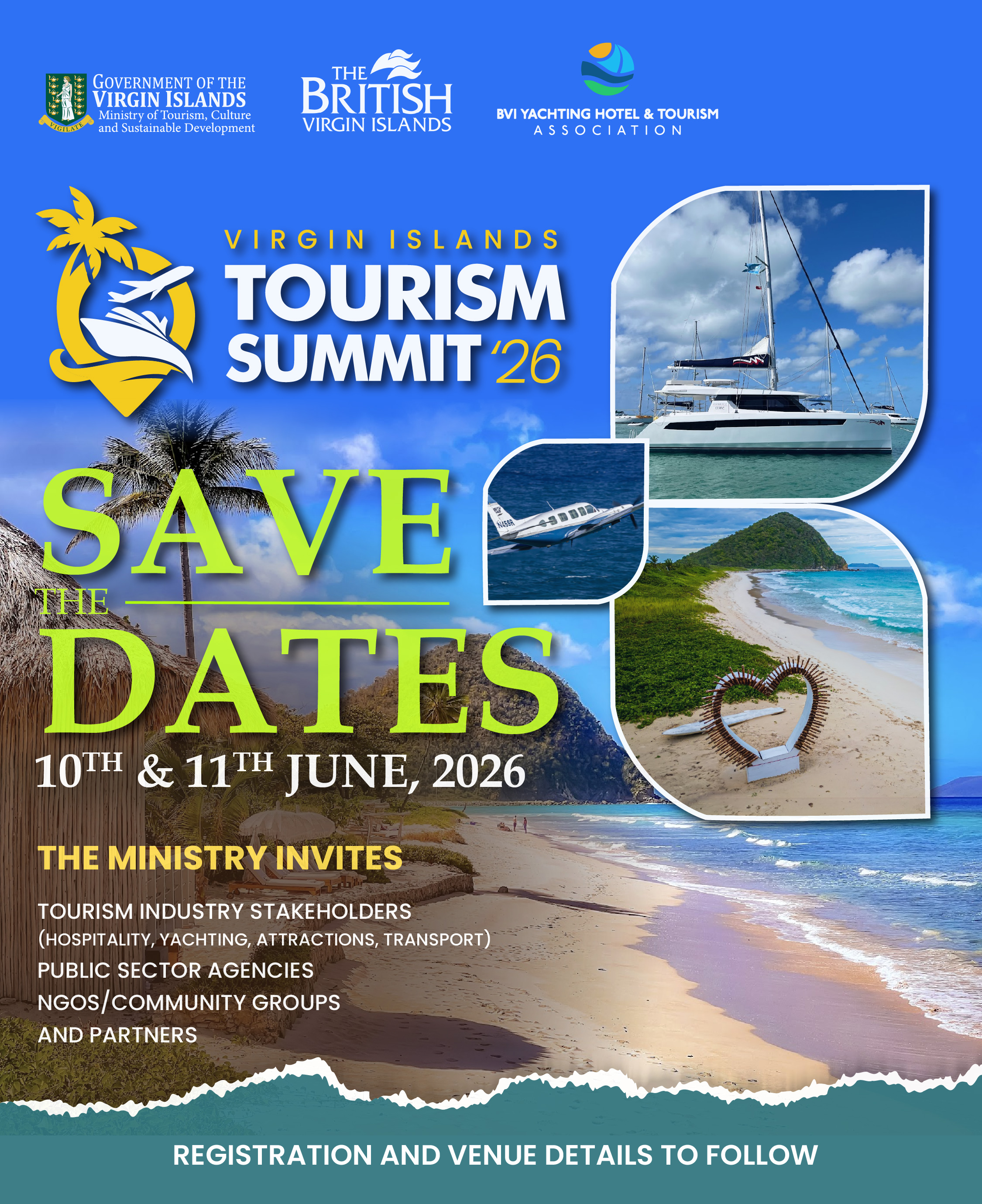 The Ministry of Tourism, Culture and Sustainable Development is pleased to announce that the Virgin Islands Tourism Summit ‘26 is scheduled to take place 10 and 11 June, 2026.