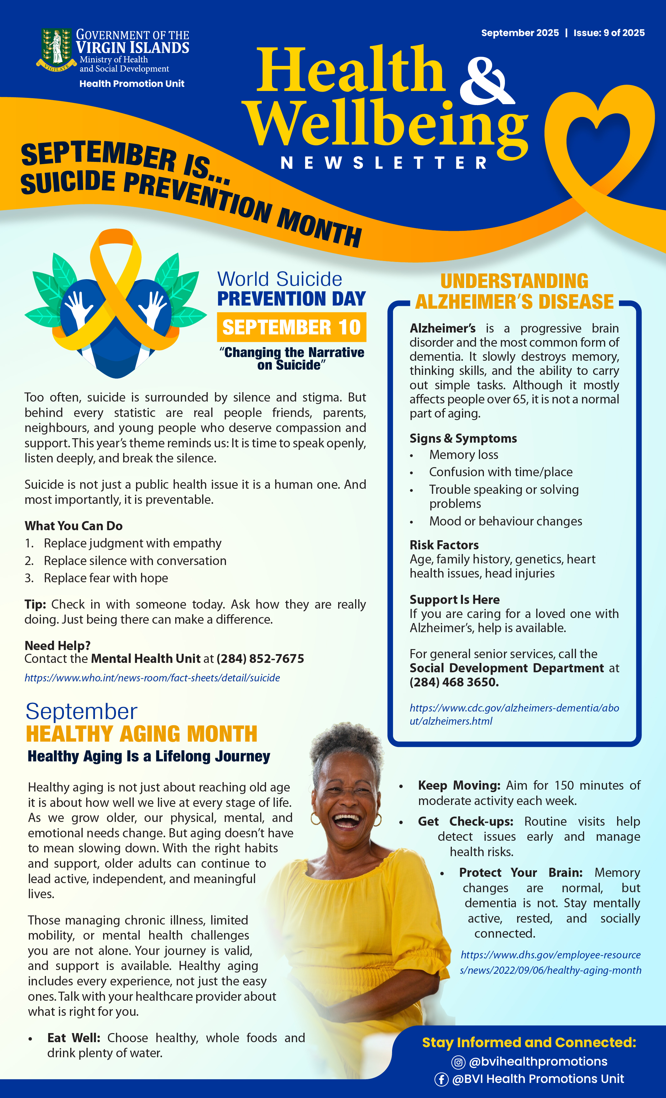 If you are caring for a loved one with Alzheimer’s, help is available. For general senior services, call the Social Development Department at (284) 468‑3650.