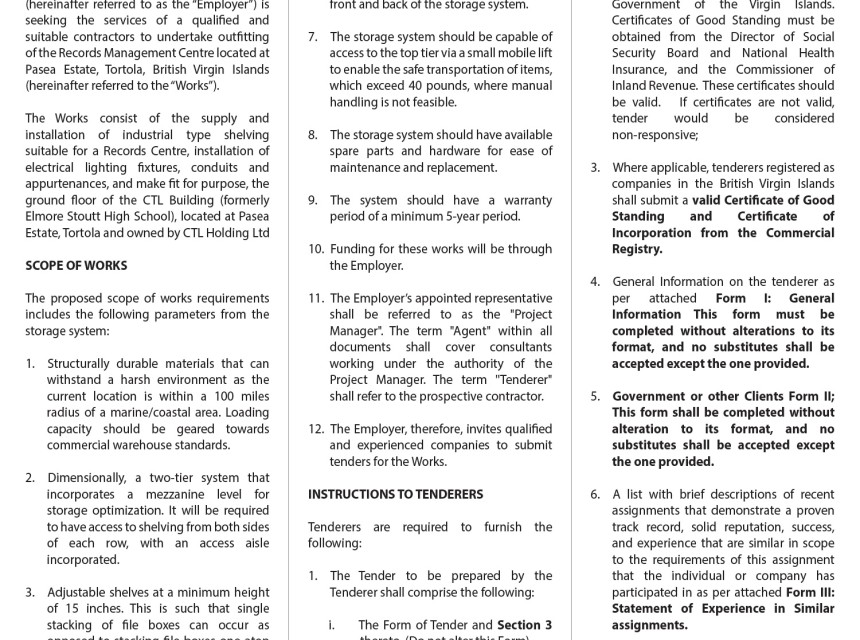 Suitable Contractor Needed to Undertake Outlifting of the Records Management Centre The Government of the Virgin Islands is seeking the services of a qualified and More ...
