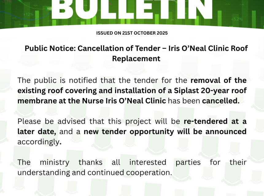 Public Notice: Cancellation of Tender – Iris O’Neal Clinic Roof Replacement