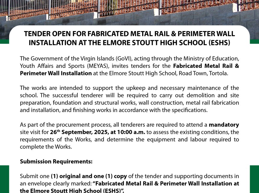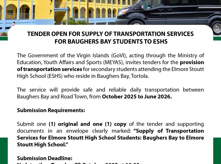 The Government of the Virgin Islands, through the Ministry of Education, Youth Affairs and Sports, is inviting tenders for the provision of transportation services for