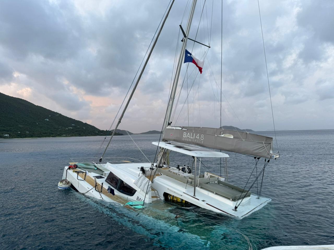 The incident took place between Long Bay, Virgin Gorda, and Seal Dog Island. It involved a 48-foot Bali 4.8 catamaran named Borrowed Bounty, which reportedly broke loose from its mooring ball, drifted, and collided with rocks at Seal Dog Island. This collision compromised the vessel's structure, caused it to take on water, and ultimately led to its sinking.