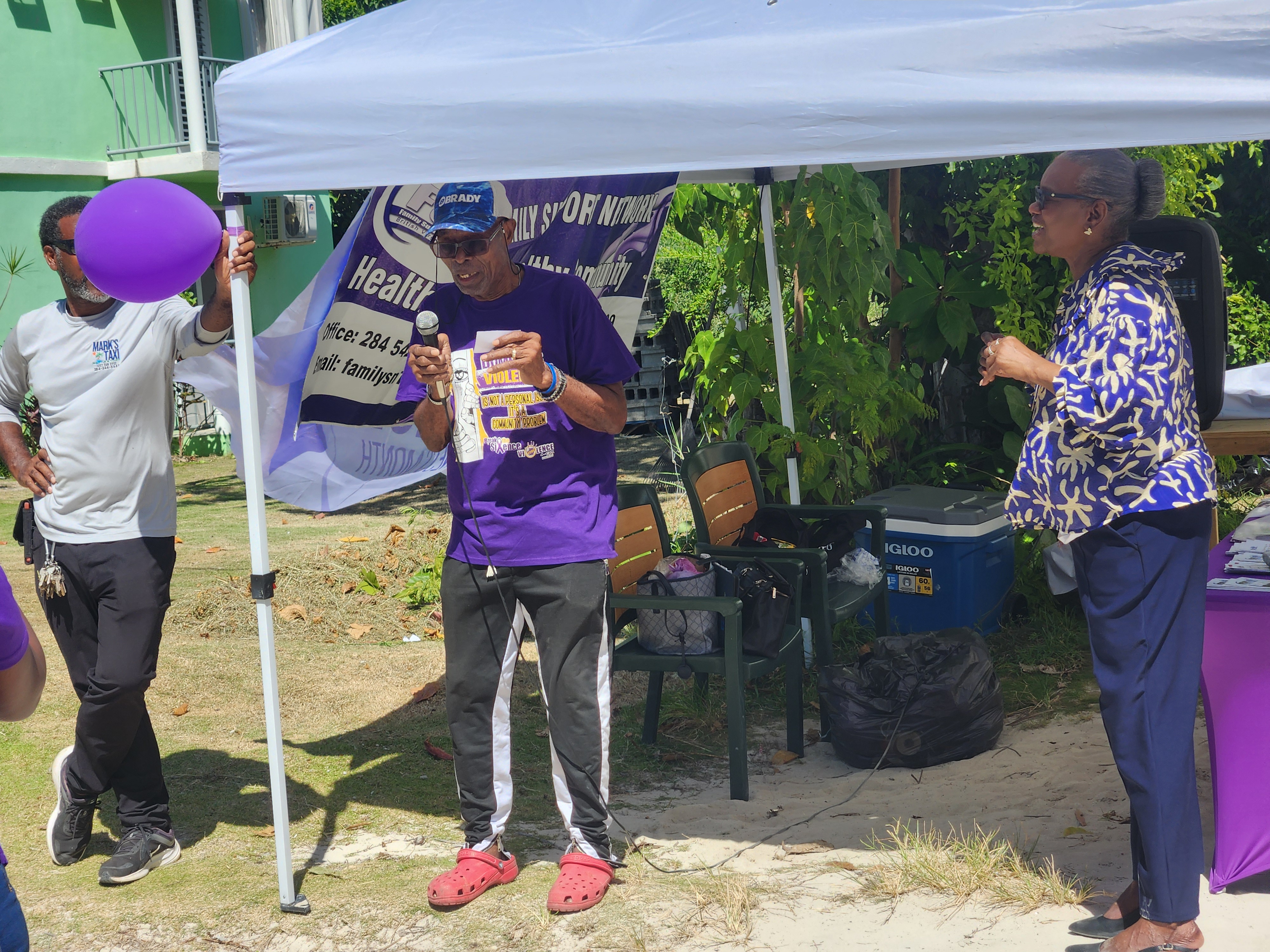 The Office of Gender Affairs (OGA), in collaboration with the Family Support Network (FSN), participated in a Domestic Violence Awareness Outreach Day in Great Harbour, Jost Van Dyke under the theme “Domestic Violence: NO!”