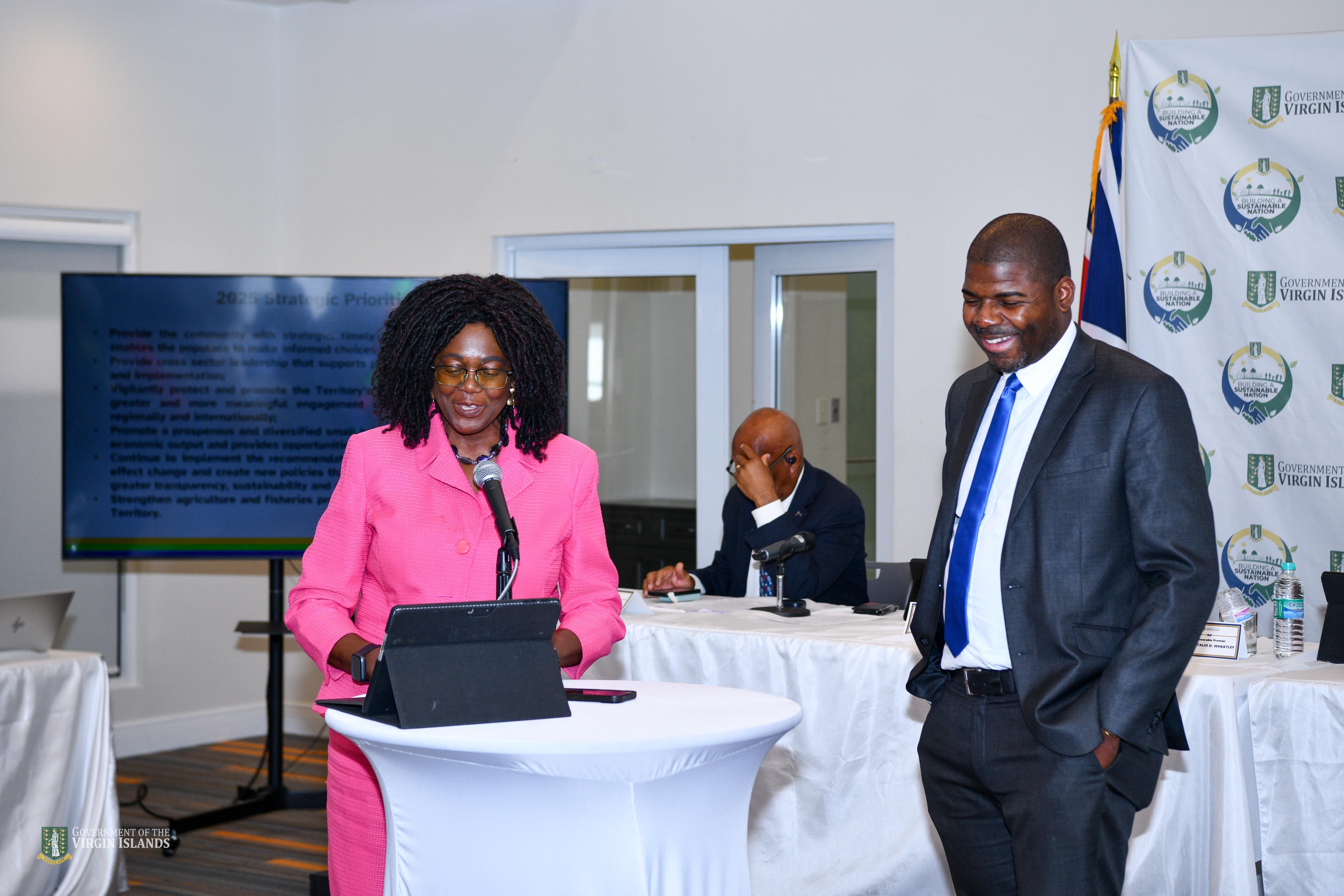 photo Caption: Premier Honourable Dr. Natalio D. Wheatley and Permanent Secretary in the Premier’s Office, Mrs. Carolyn Stoutt Igwe at the mid year review on 10 September 2025.