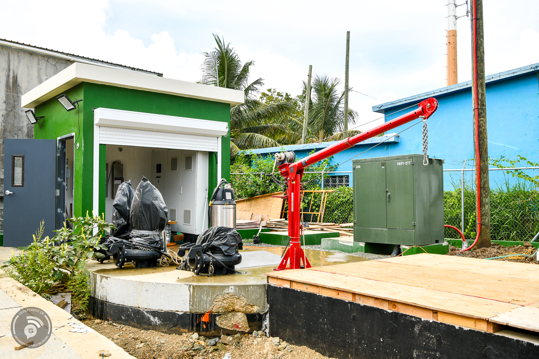 Contractor for BioSafe Solutions, Mr. Kern Mitchell, and Project Manager, Mr. Marquese Maduro, confirmed that the Long Swamp Pump Station project is approximately 85% complete. They are currently awaiting approval for the final road closure to facilitate installation of the last manhole and sewerage connection.