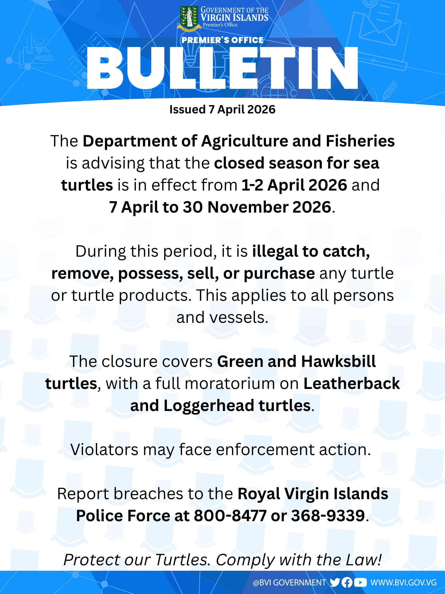 Report breaches to the Royal Virgin Islands Police Force at 800-8477 or 368-9339.