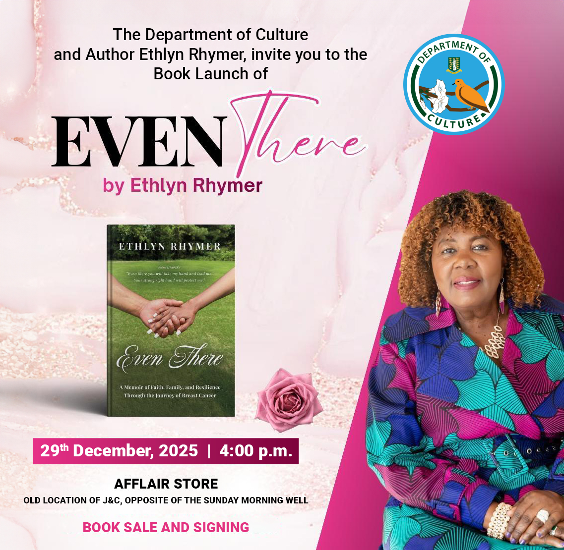 The Department of Culture will be supporting Pastor Ethlyn Rhymer for the upcoming release of her new book: Even There.