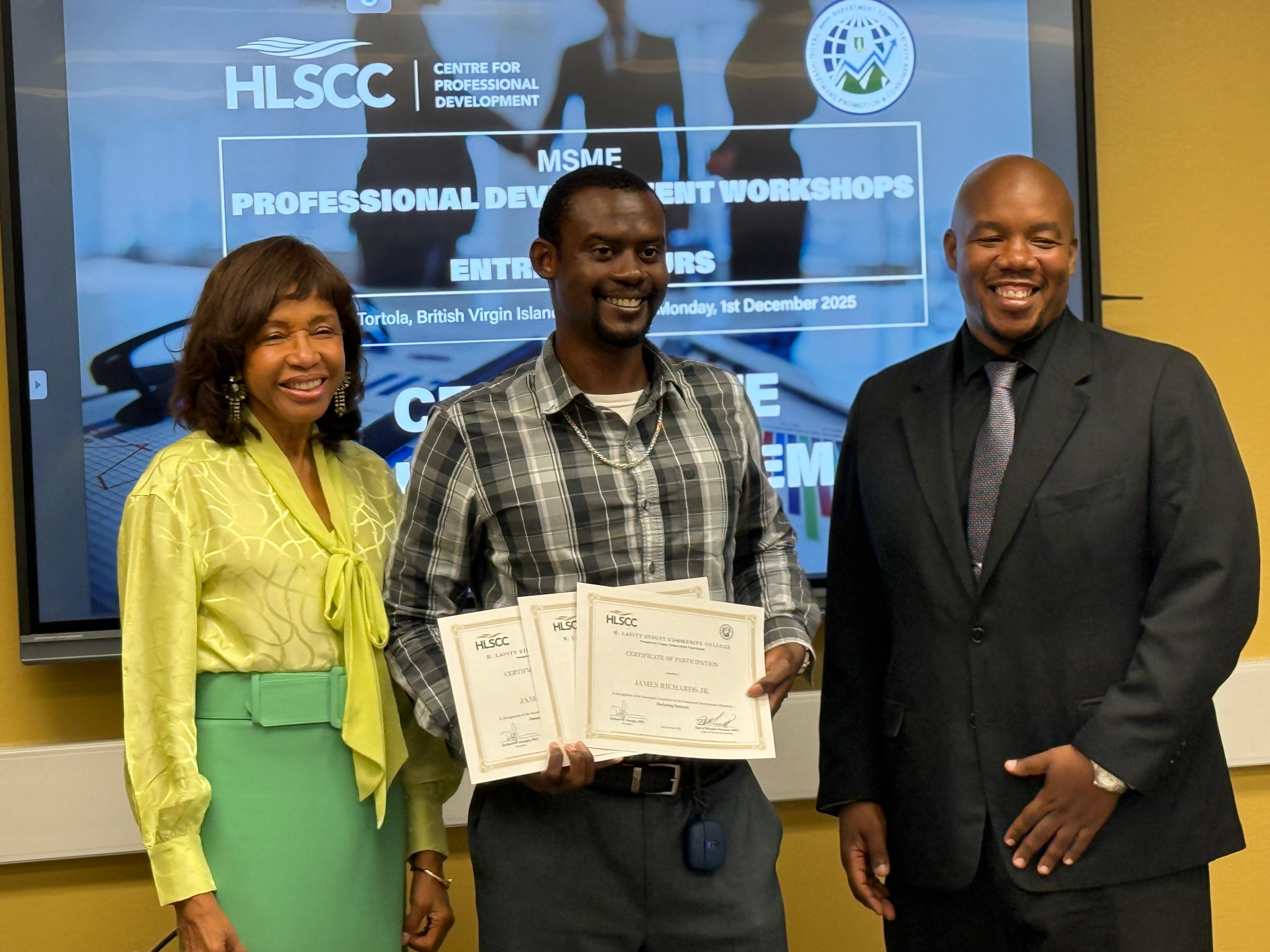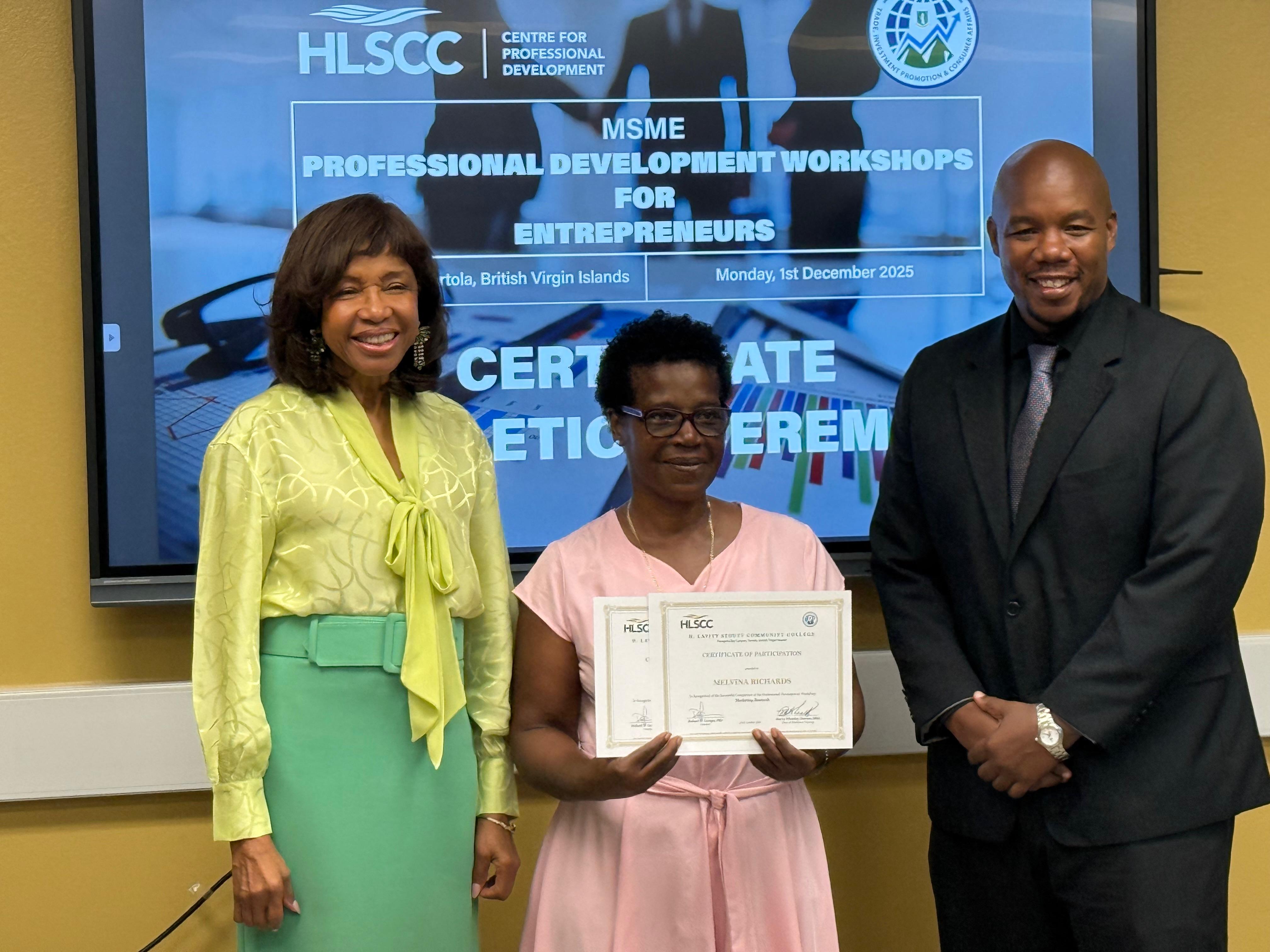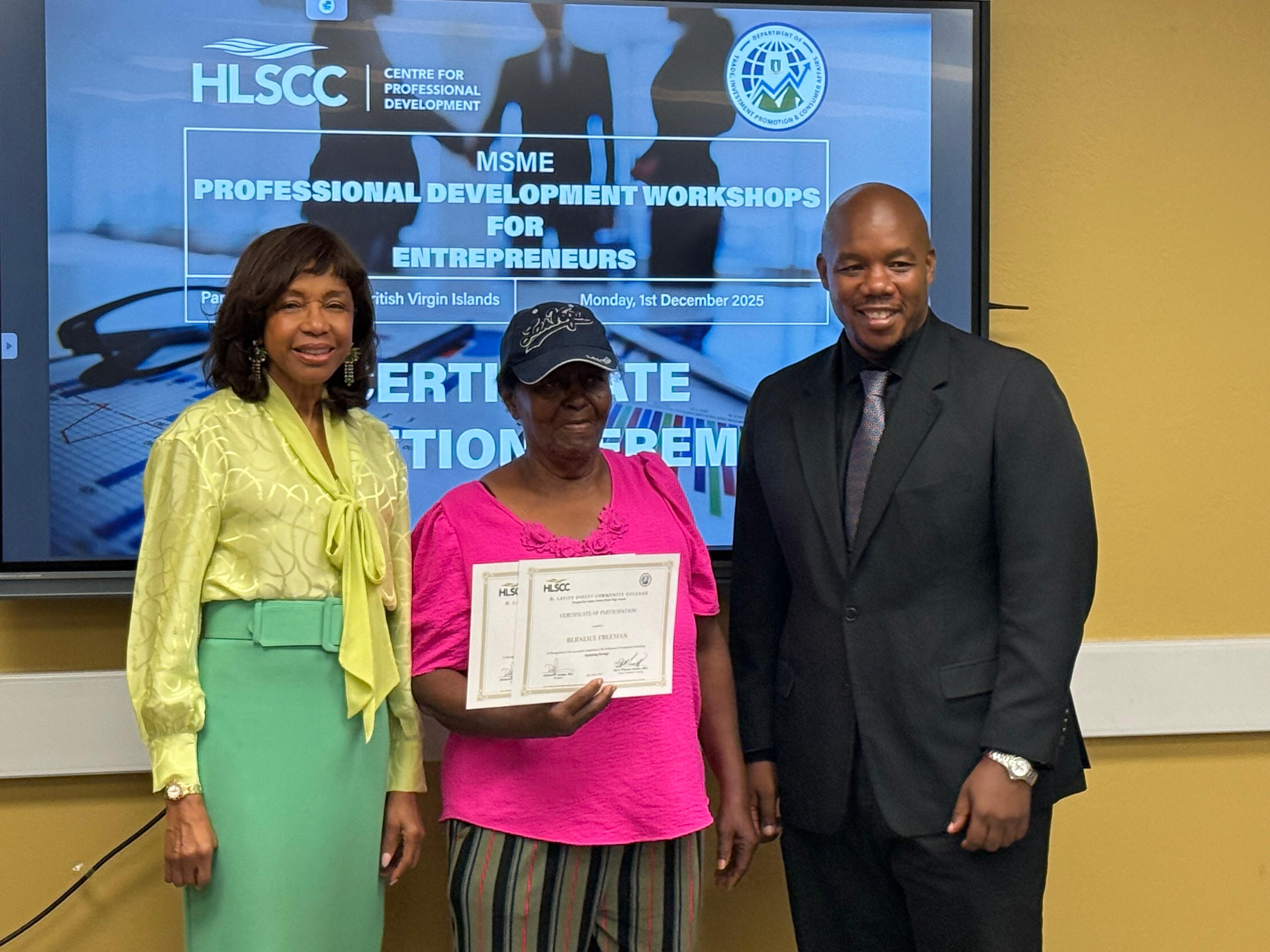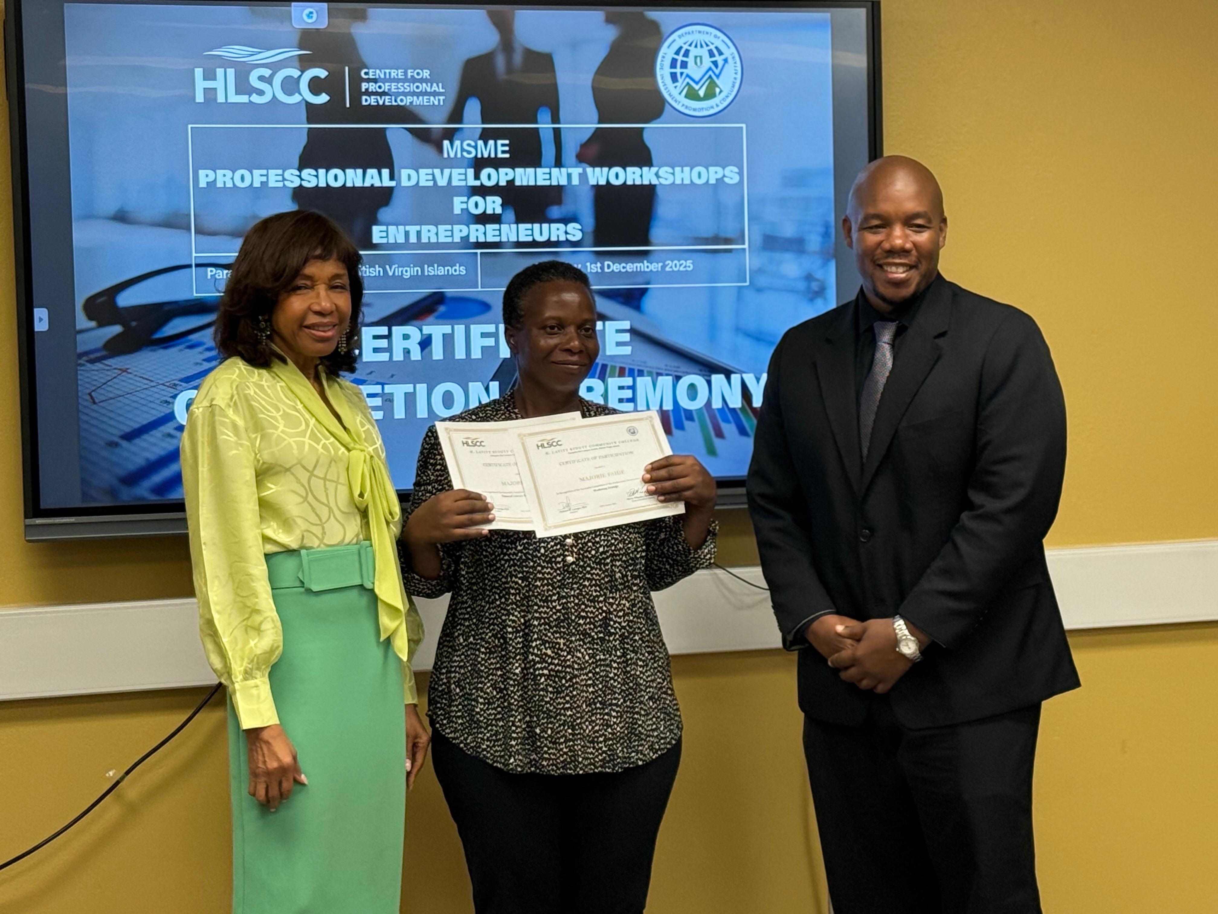 The Department of Trade and Investment Promotion, in partnership with the H. Lavity Stoutt Community College (HLSCC), celebrated the successful completion of its three-week Entrepreneur Training Programme during an award ceremony held on Monday, 1 December 2025, at the HLSCC Marine Centre.