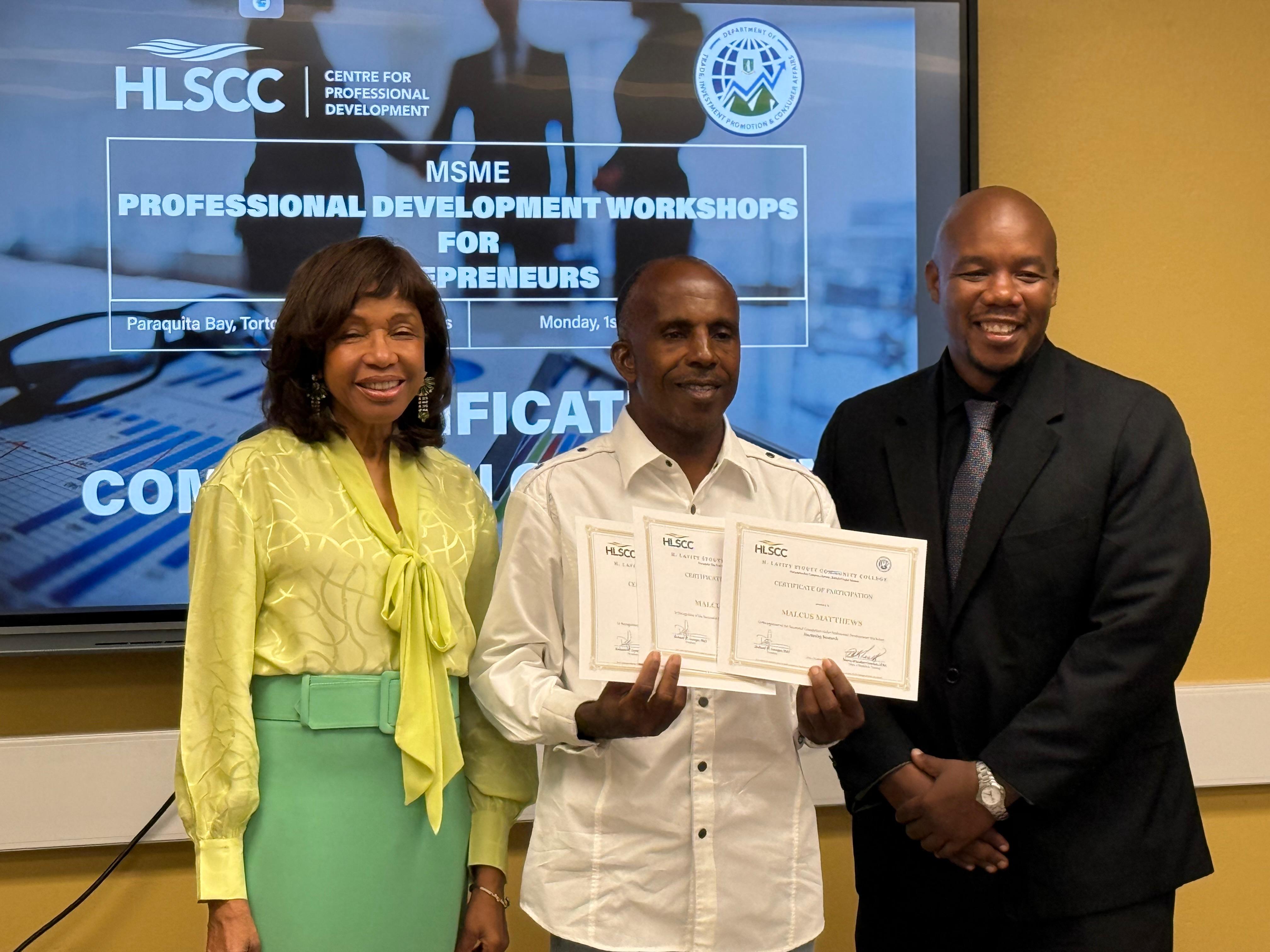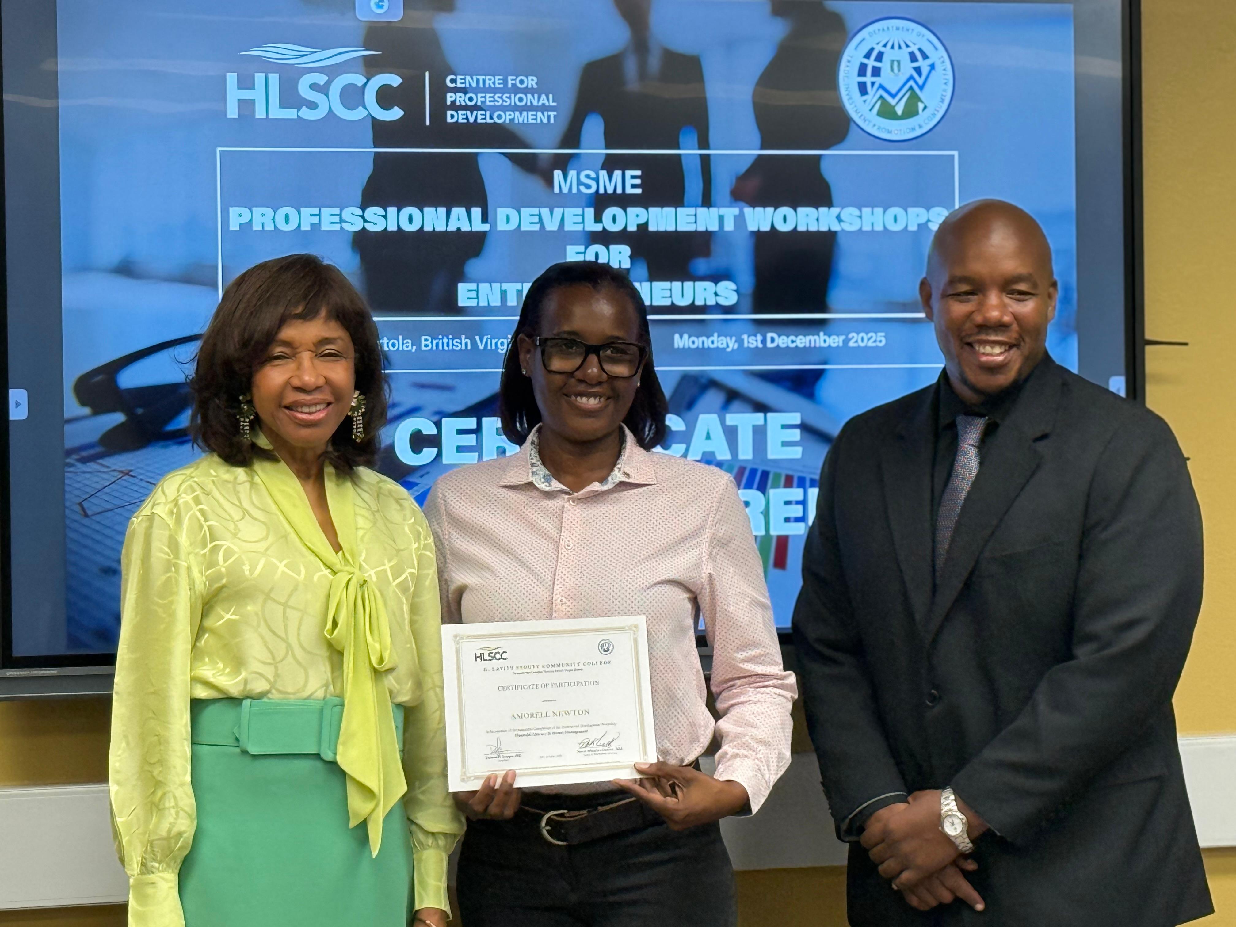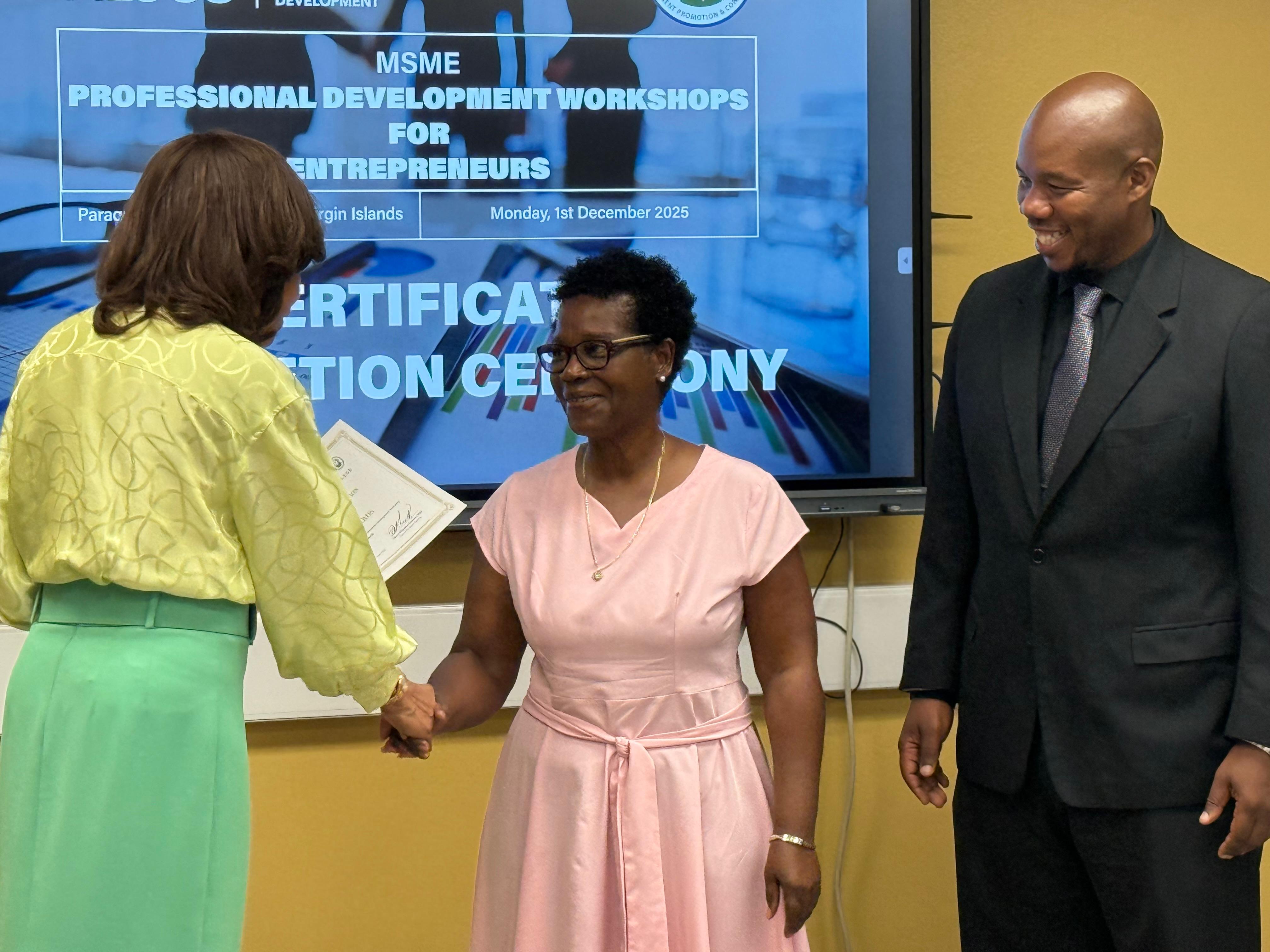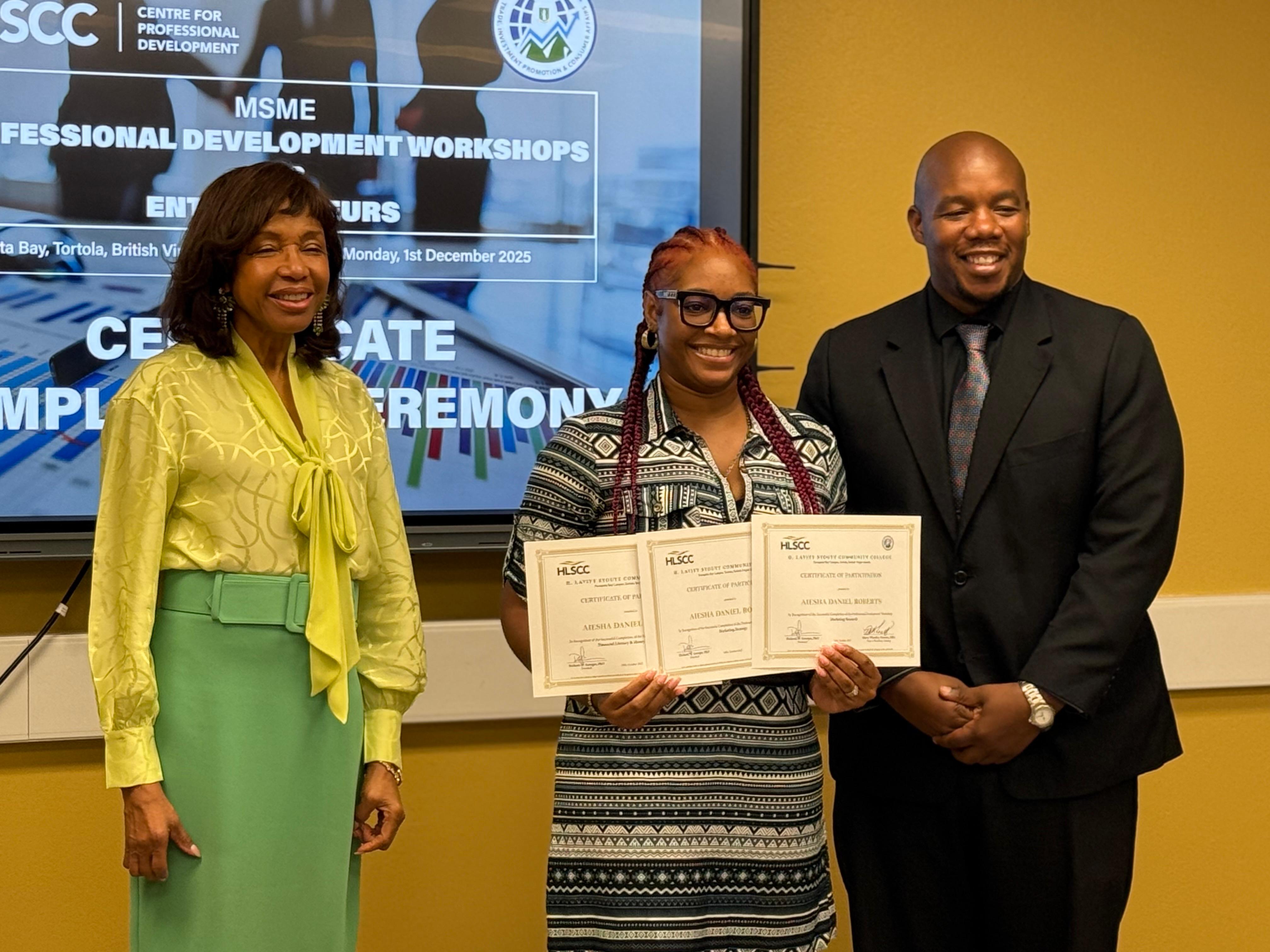 The Department of Trade and Investment Promotion, in partnership with the H. Lavity Stoutt Community College (HLSCC), celebrated the successful completion of its three-week Entrepreneur Training Programme during an award ceremony held on Monday, 1 December 2025, at the HLSCC Marine Centre.