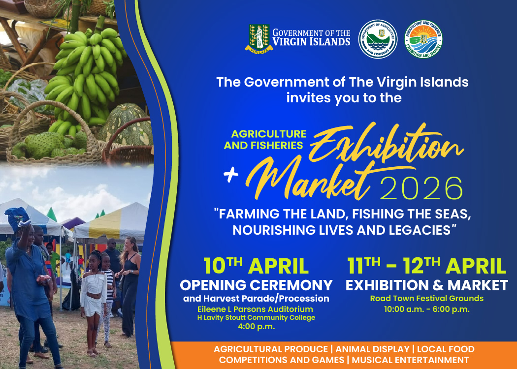 The opening ceremony for this year’s Agriculture and Fisheries Exhibition and Market will be held on Friday, 10th April, at 4p.m. at the Eileene L. Parsons Auditorium at the H. Lavity Stoutt Community College. The ceremony will feature a harvest procession, musical entertainment, official remarks, and games.