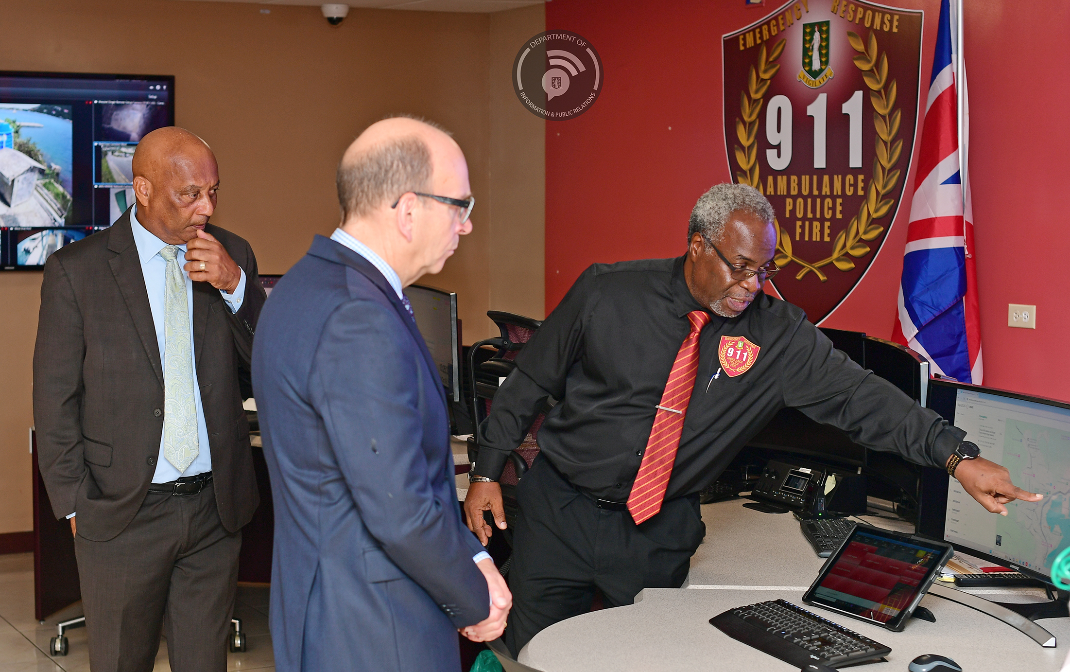The Ministry of Health and Social Development recently hosted a live demonstration of the Territory’s new 911 Computer-Aided Dispatch (CAD) system for key Government officials, including the Minister for Health and Social Development, Honourable Vincent O. Wheatley; His Excellency the Governor, Daniel Pruce and the Acting Commissioner of Police, Jacqueline Vanterpool