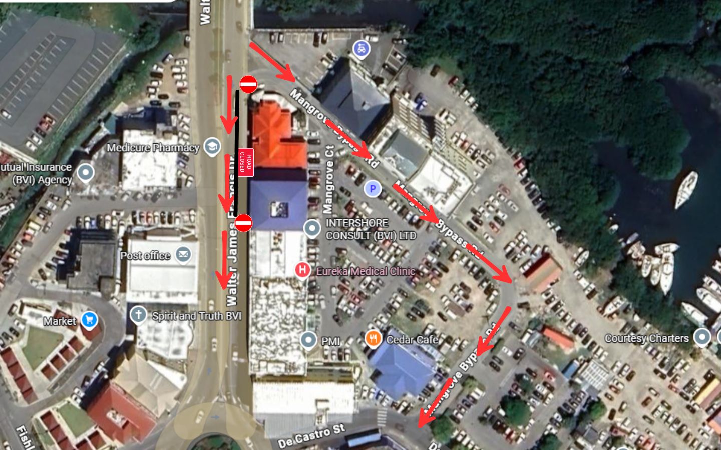 The purpose of these partial road closures are to facilitate repairs on the RJT Edifice. Traffic will be redirected through the Mangrove by-pass and the outer westbound lane of the James Walter Francis Drive.