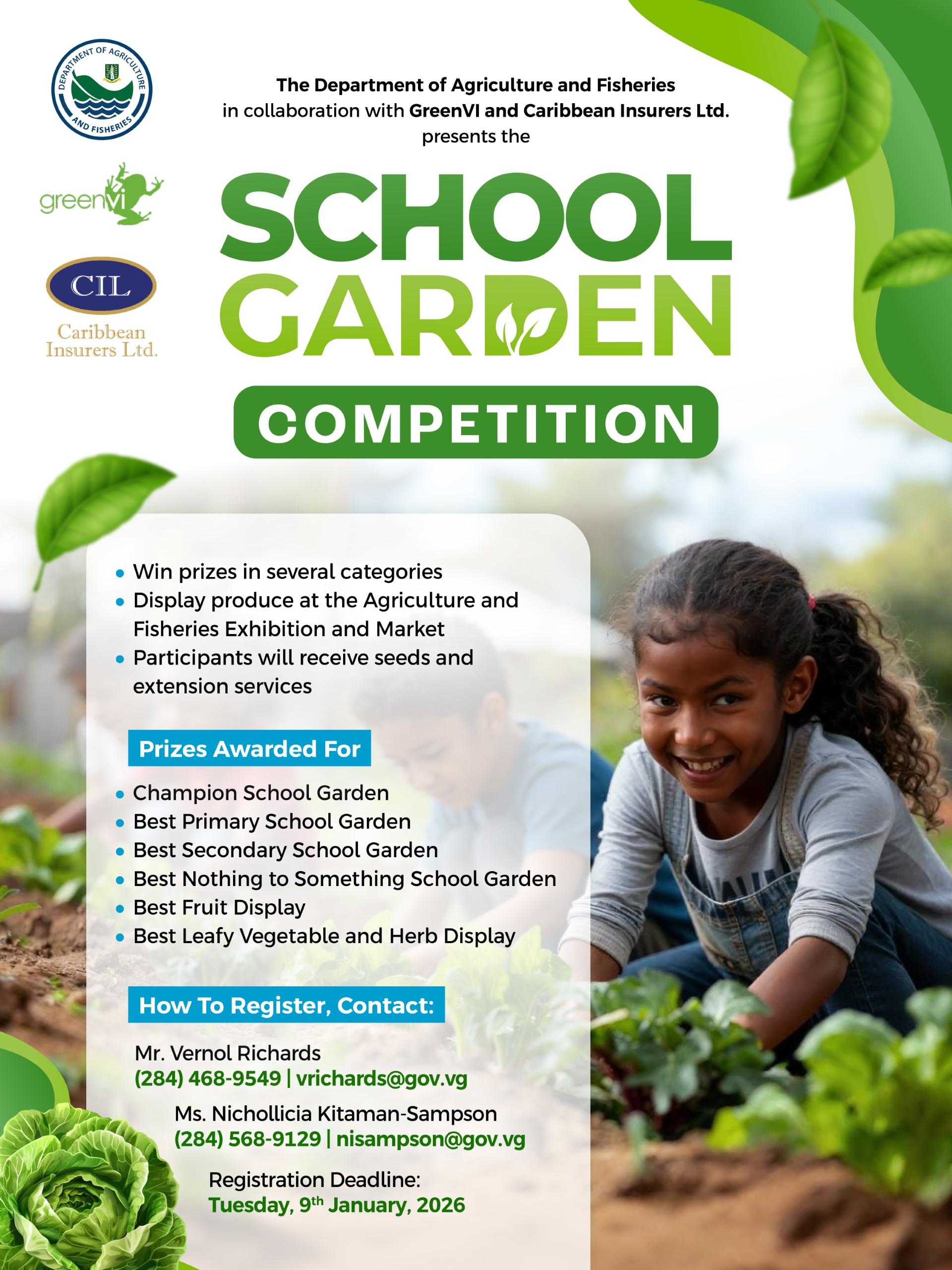 The Department of Agriculture and Fisheries, in collaboration with GreenVI and Caribbean Insurers Ltd., is proud to present the School Garden Competition.