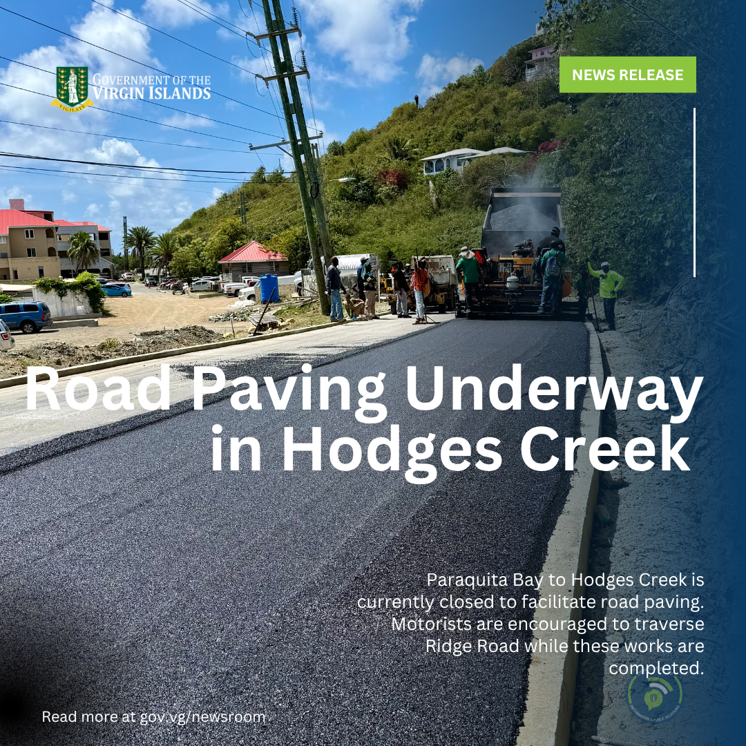 The public is notified that the Department of Public Works (PWD) will be conducting road paving in Paraquita Bay from Thursday 19th March to Wednesday 25th March between the hours of 8:30a.m and 3:30p.m (Excluding the weekend).