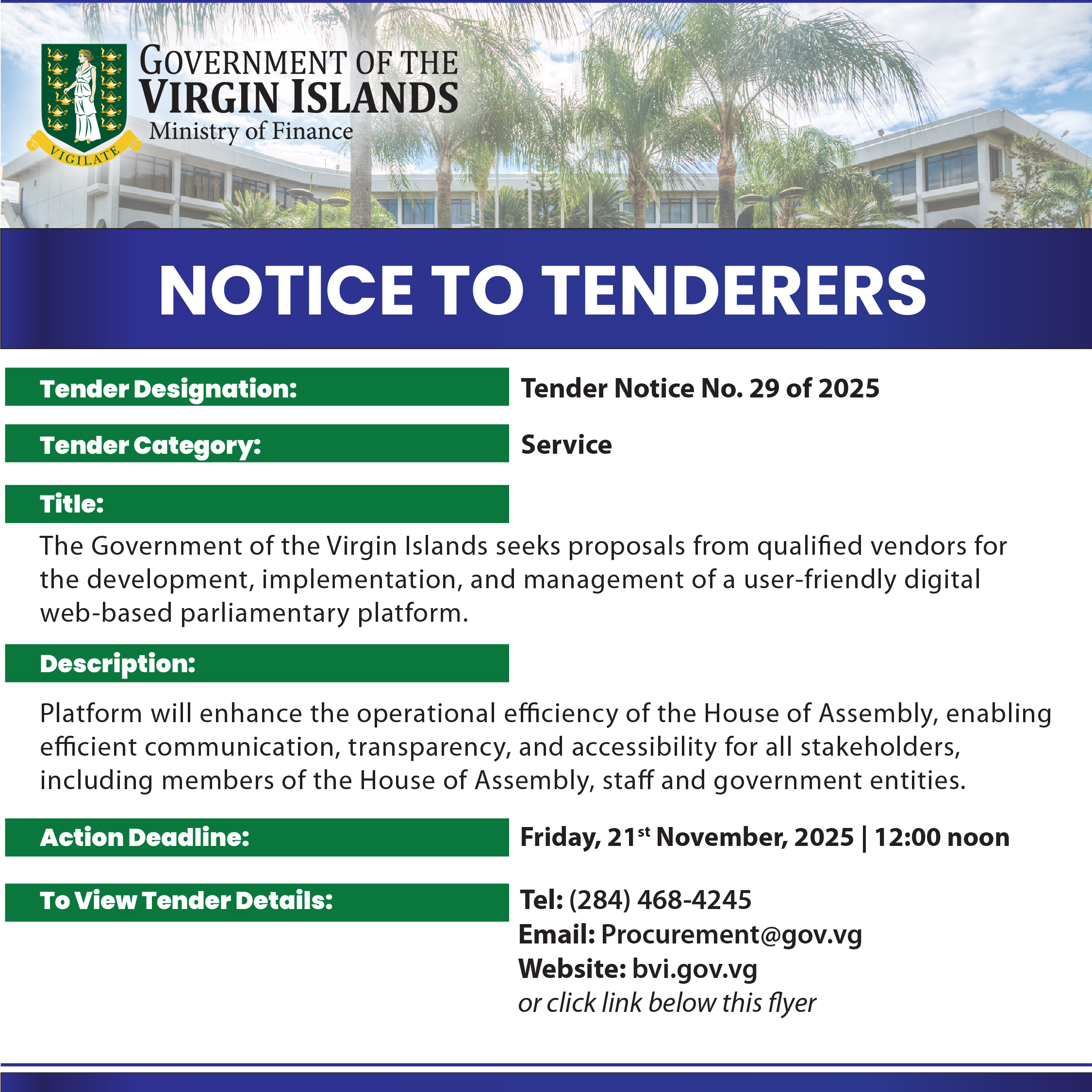 The Government of the Virgin Islands is inviting qualified vendors to submit proposals for the development, implementation, and management of a secure, user‑friendly web‑based parliamentary platform for the House of Assembly.