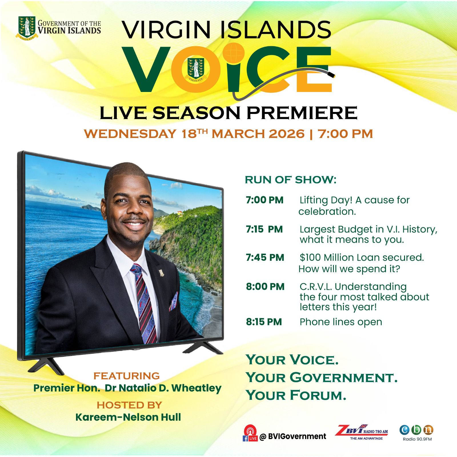 Tune in for the LIVE premiere of Virgin Islands Voice on Wednesday 18th March 2026 at 7 PM!