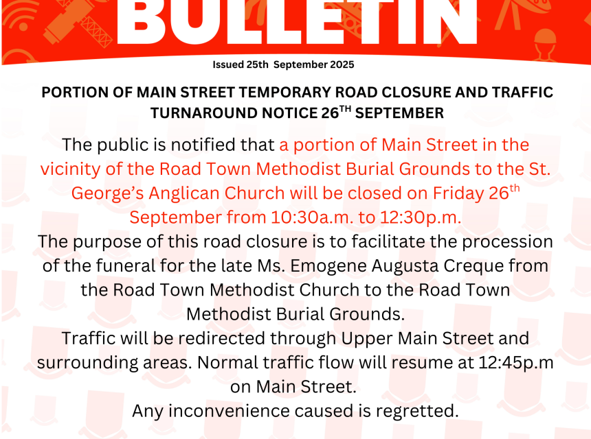 Road Town Traffic Interruption Notice 18th October
