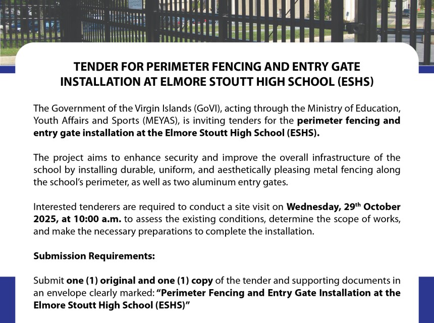 The Government of the Virgin Islands, through the Ministry of Education, Youth Affairs and Sports, is inviting tenders for the Supply of Transportation Services for